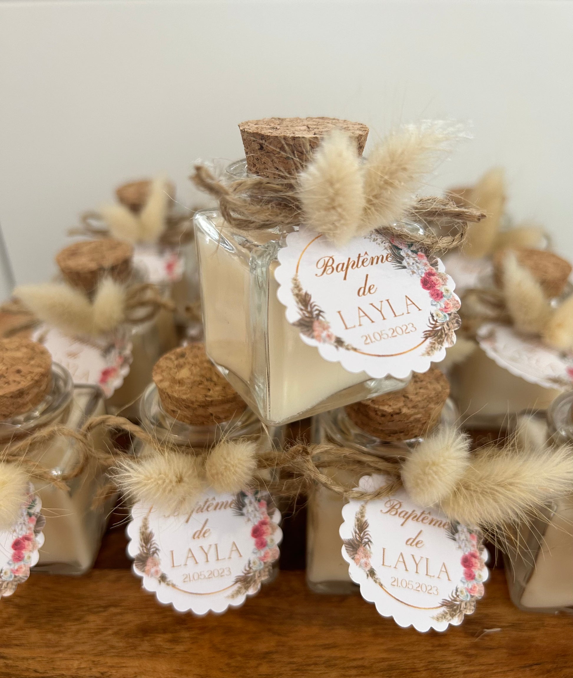 Merci pour ces sublimes bougies. Elles sont parfaites. Livraison rapide pour les avoir à temps pour le baptême civil de bébé Milo. 🤩