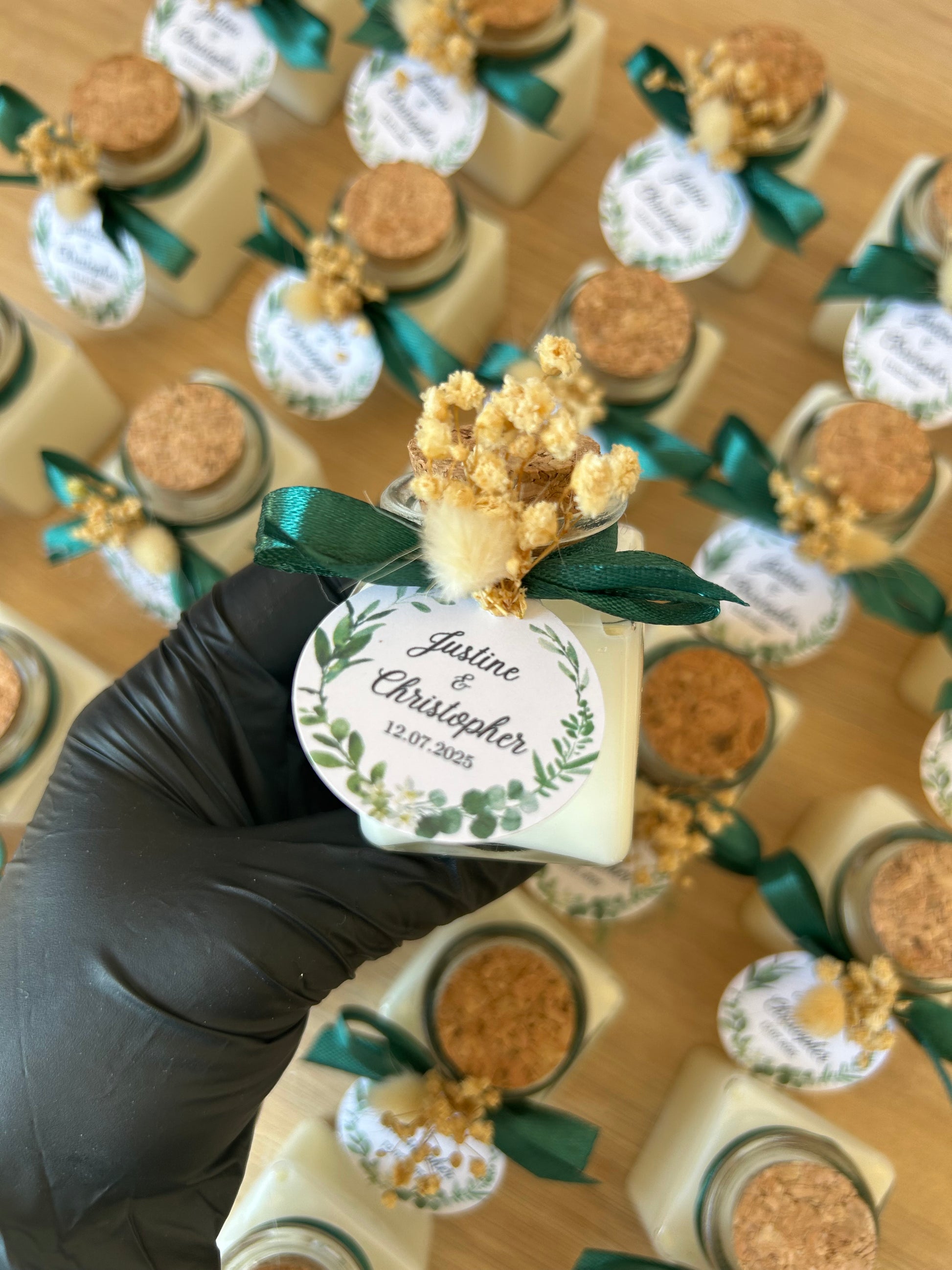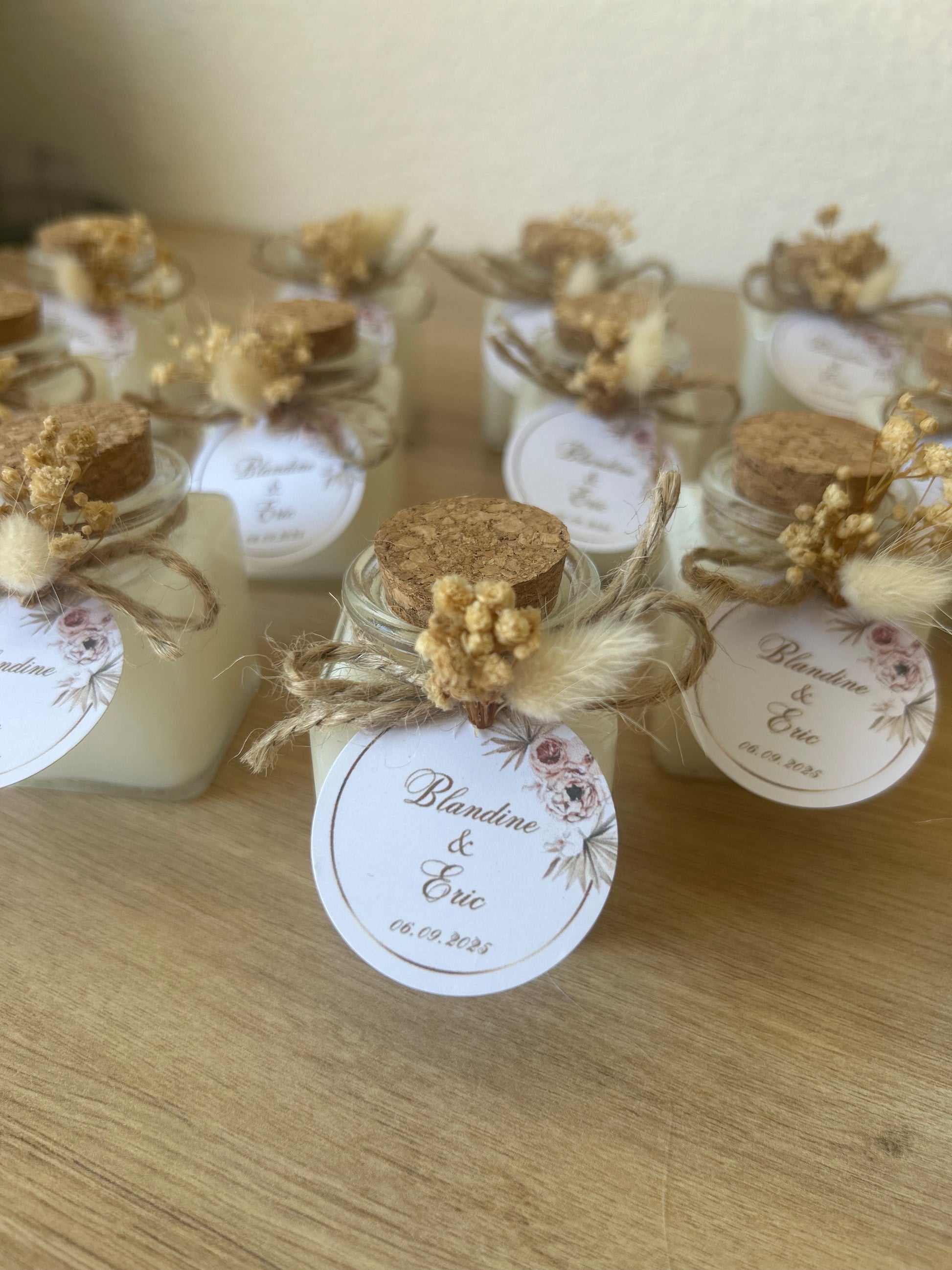 Un grand merci à vous pour votre réactivité ainsi que votre professionnalisme. Les bougies sentent super bon j'en suis très satisfaite. J'ai hâte de les donner à nos invités