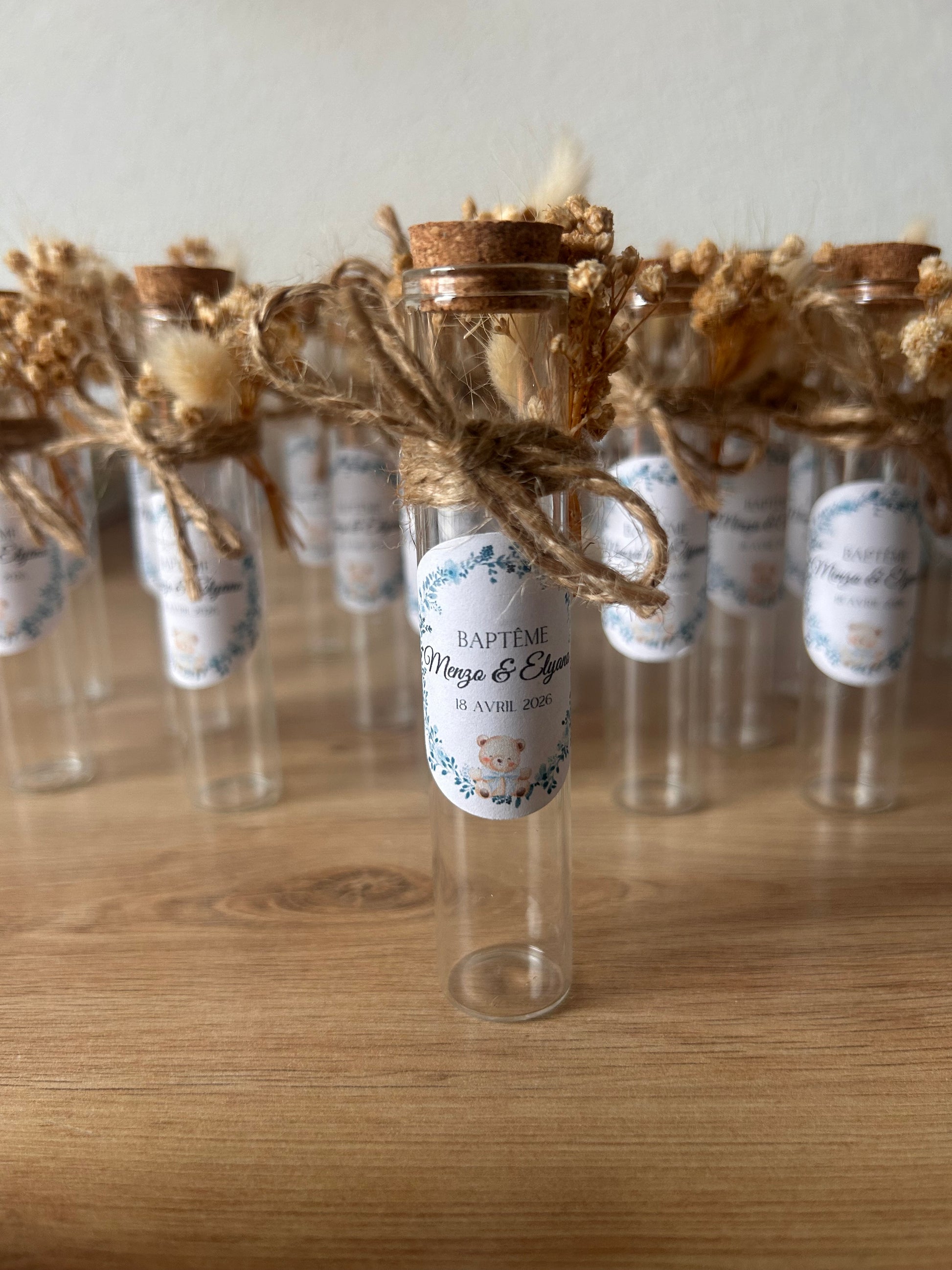 Contenant en verre tube, bouchon en liège Dimensions D 2.2 x H 10 cm