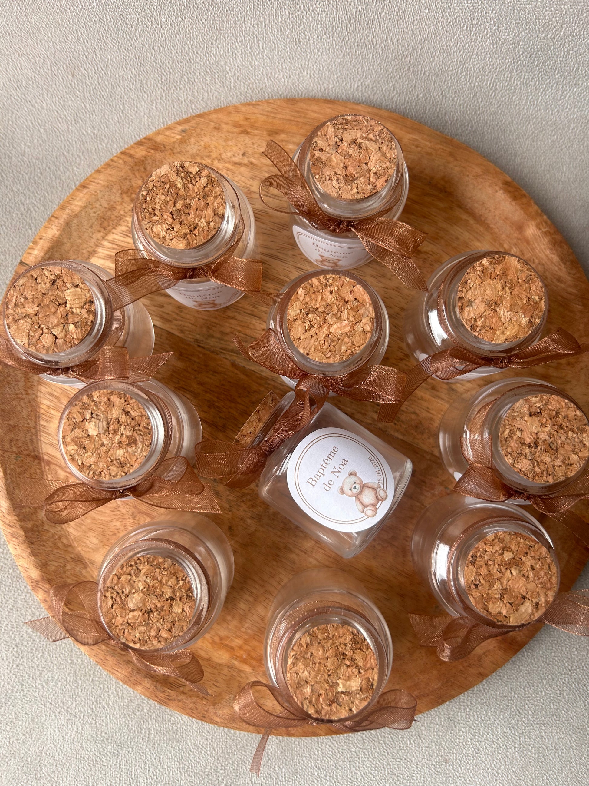 Contenant en verre rond, bouchon en liège Dimensions D 5 x H 10 cm